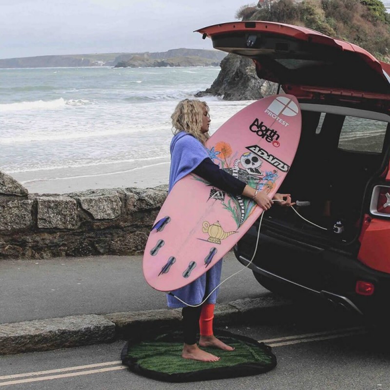 Tapis 1 mètre, étanche, transformable en sac avec poignées pour transporter votre combinaison mouillée sans fuite.
