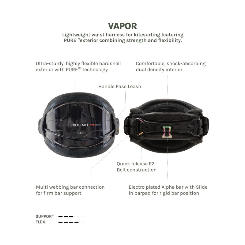Harnais Ceinture Rigide Kitesurf Prolimit Vapor Black : Puissance, stabilité et contrôle absolu